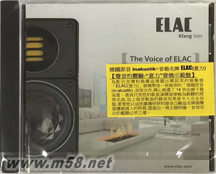 以專門製作高質素音箱見稱的”ELAC(意力)”於1926年在德國的基爾(Kiel)成立,有接近90年的長久歷史,是一間勇於創新,走進時代尖端的音響器材設計和製造公司。公司成立時是以開發和拓展聲納技術(sonar technology)為主,但在1945年二次世界大戰后因市場的需要轉移生產縫紉車和收音機,是公司製造的產品首次與音頻(audio)有關。1948年研發出首臺黑膠唱盤PW1在推出市場后迅即成為唱盤中的翹楚,亦奠定了ELAC在音響界崇高地位。1980年代前期開始,公司開拓和生產高級「發燒」器材,而揚聲器是其中一個主要的發展項目,因其產品的性能表現卓越,很快成為追求至美音效的「發燒友」所心儀的器材之一。在過往的十多二十年,ELAC的產品不斷地創新和改進,緊貼市場的需求和改變,亦曾獲得多個重要的國際音響有關的獎項,因此成為音響界中的一個極具威望的廠牌。因揚聲器在整個音響系統當著重要角色,鑑定音準和真實重播必定要經由它發揮最高性能表現才能達致最理想的音響效果。”ELAC(意力)”揚聲器的特性是音色晶瑩剔透,動力十足,獨特中充滿魅力,重播真確性極高,這些優質的表現,必須由清澈明亮、解像度高的優秀錄音才可將極級器材的性能完美地呈現。現由以專業製作及代理高質錄音音效產品而獲發燒樂迷一致推崇的著名德國品牌in-akustik為配合宣傳和推廣這德國出類拔萃的揚聲器,精心挑選了14首由旗下最高質、最具代表性的歌星演繹旋律極為動聽的經典名曲,加上每首歌曲的錄音效果皆令人完全信服,著意地以這些廣獲好評的錄音凸顯這名牌揚聲器優越過人的特質,塑造出一張主題明確、音效突出的鑑聽必然之選。