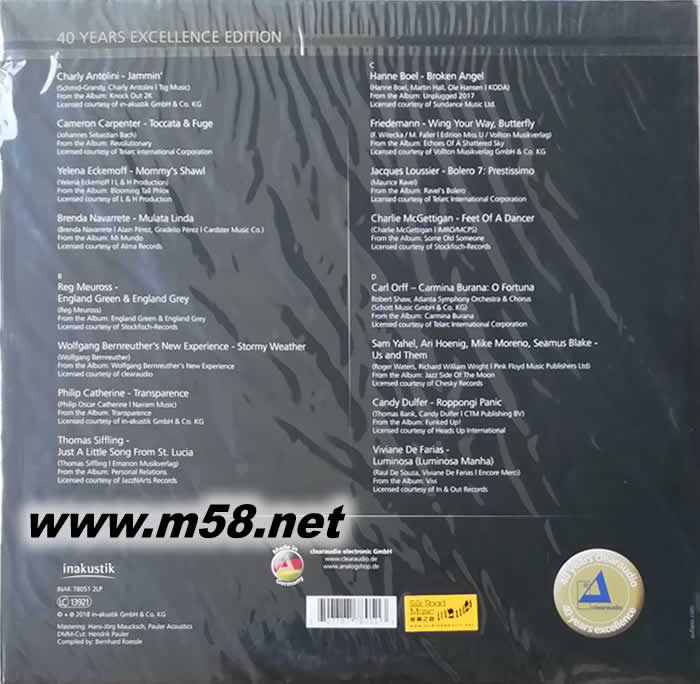 產(chǎn)品名稱:  清澈 40周年紀念卓越鑒聽盤 Clearaudio 40 Years Excellence Edition 雙黑膠   [2LP]