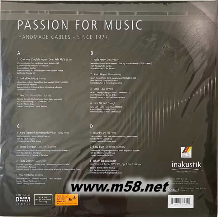 線王-音樂的熱誠 Passion For Music inakustik 45轉(zhuǎn) 雙黑膠專輯背面圖片