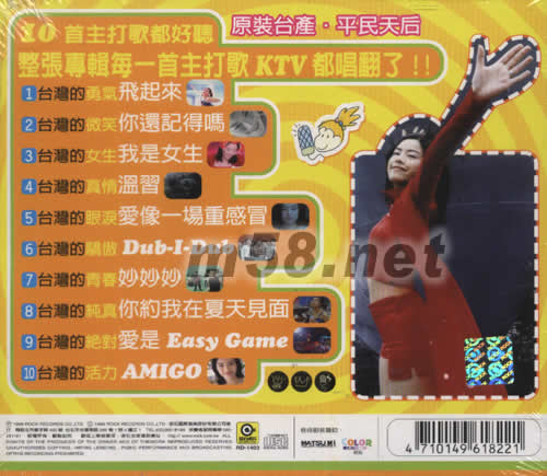 01.臺灣的 勇氣飛起來 02.臺灣的 微笑你還記得嗎 03.臺灣的 女生我是女生 04.臺灣的 真情溫習 05.臺灣的 眼淚愛像一場重感冒 06.臺灣的 驕傲Dub-I-Dub 07.臺灣的 青春妙妙妙 08.臺灣的 純真你約我在夏天見面 09.臺灣的 絕對海力愛是Easy Game 10.臺灣的 活力AMIGO