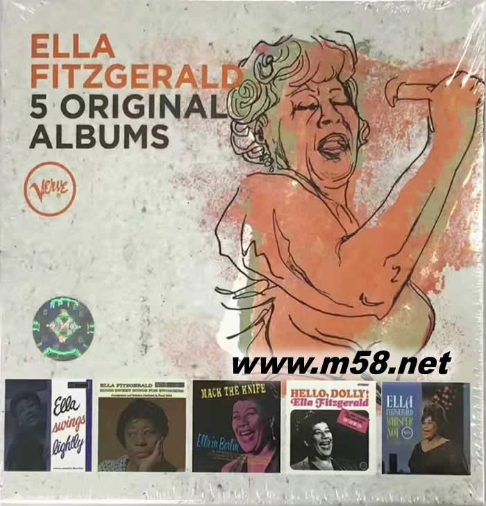 爵士超凡大師傳奇 5 Original Album Ella Fitzgerald 5CD套裝(m58.net) 爵士樂第一夫人,完美天后典范之永恆傳世經典風華5CD王盤典藏 ★20世紀最受歡迎且最具代表性的聲音,其前后長達六十余年的歌唱生涯也幾乎等同於一部當代爵士樂演進史 爵士天后艾拉‧費茲潔拉Ella Fitzgerald擁有歌者所必須具備的一切天賦。如精確的音準、不可多得的節奏感,以及溫暖的聲音和即興的特質。在經典曲目和抒情曲的詮釋,艾拉獨樹一幟地使曲調由柔緩轉為熱情,並毫不吃力地再回到原曲面貌。無怪乎有人稱她為爵士樂的“第一夫人”。她人生最大的轉捩點是碰見了著名的製作人暨Verve廠牌創辦人諾曼‧葛蘭茲(Norman Granz);諾曼‧葛蘭茲有計畫的為艾拉‧費茲潔拉規劃演藝生涯,安排她跳脫出當時一般較厘俗的爵士曲目范圍,挑戰一些音樂劇曲目的錄音,嘗試著將艾拉‧費茲潔拉的歌唱境界提昇至藝術的層面。一連串在Verve廠牌下的“歌曲大全輯「The complete songbook」錄音使得艾拉‧費茲潔拉的作品質量均佳;她輕亮、優美、幸福的嗓音可以更深入傳達到社會大眾的耳中。在1938年以演唱“A-Tisket, A-Tasket”一曲聲名鵲起,可跨越三個八度的寬廣音域、揮灑自如的擬聲技法及幽默風趣的臨場臺風使其作品量多且質精,均是足以留名青史的歌唱藝術典范逸作,不僅為其超過半個世紀的爵士生涯奠定下深厚根基,更漸建立起“爵士第一天后”的無上美譽,並與比莉‧哈樂黛及莎拉‧沃恩並列爵士三大女伶之列。費茲潔拉一生共榮獲13座葛萊美獎肯定,唱片銷售更突破4千萬張無人能出其右的空前佳績!艾拉不僅是廿世紀最受歡迎且最具代表性的聲音,其前后長達六十余年的歌唱生涯也幾乎等同於一部當代爵士樂演進史。本套裝5CD之最收錄了她在Verve旗下最具代表性且極其稀有的傳奇錄音….不朽經典彌足珍貴