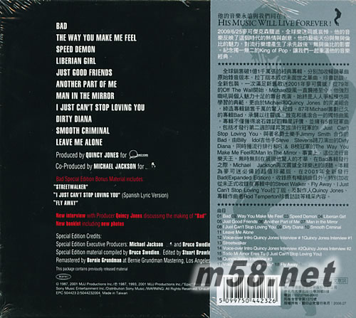 BAD (臺灣版)專輯背面圖片