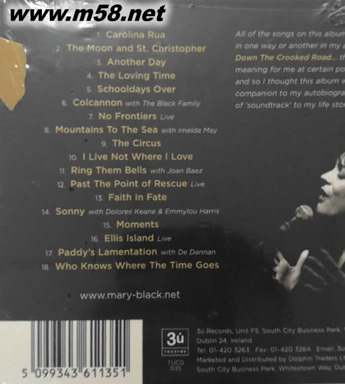 Down The rocked Road 黑瑪莉深情精選 三十周年(m58.net) 發燒天后出道三十年自傳式精選專輯,18首經典歌曲,盡現天后三十年精湛歌藝。 發燒天后Mary Black出道三十年,從音樂家庭中的小女孩成為今天的發燒女聲天后,今年,Mary Black推出其自傳式精選專輯,以文字及歌聲,讓聽眾一起重溫過去三十年Mary Black的輝煌歲月。全碟收錄18首經典歌曲,首首耳熟能詳,盡現天后三十年的精湛歌藝。原裝進口無論是人聲還是配器皆表現出前所未有的溫暖通透,是一張絕對值得您典藏,能夠讓你百聽不厭的鑑賞級天碟。