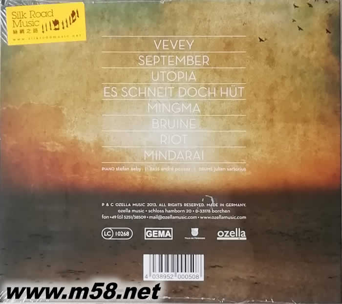 斯特凡.艾拜三重奏(Stefan Aeby)是瑞士一隊朝氣勃勃,技術不凡,極具雄心的鋼琴爵士樂三重奏,成員包括領隊亦是鋼琴手的斯特凡.艾拜(Stefan Aeby),低音大提琴手安德烈.普薩斯(André Pousaz)及鼓手朱利安.賽多利斯(Julian Sartorius)。艾拜的鋼琴演奏技巧出眾,時剛時柔,一時輕鬆,一時沈鬱,彷如帶領著你在蜿蜒曲折的長路上踏驥迎風,悠然自得。普薩斯溫婉動人的低音大提琴配合具靈敏節奏感的鼓手賽多利斯,他們演奏的樂曲旋律皆圓潤豐滿,流暢自然,音色亮澤,使你如沐春風,精神為之一振。此黑膠專輯【烏托邦(Utopia)】就是他們的音樂理想的轉化,你可從【Vevey(沃韋)】、【September(九月)】、【Utopia(烏托邦)】【Es Schneit Doch Hüt(在下雪中的木屋)、【Mingma(明瑪)】、【Bruine(毛毛雨)】、【Riot(騷亂)】和【Mindarai(明達雷)】等樂曲細味品嚐時領悟箇中精髓。此專輯以180克33 1/3轉處女黑膠為載體,金刻直刻母盤由「老虎魚」錄音室專責處理,純模擬聲效,更接近歌曲的原來神韻和風貌,從聆聽中嘗試與樂隊一齊進入他們理想之邦。