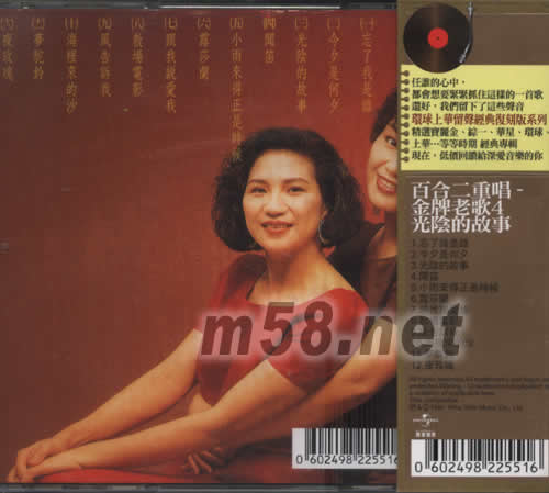 金牌老歌4 光陰的故事 [經(jīng)典復刻版](m58.net) 任誰的心中,都會想要緊緊抓信這樣的一首歌 還好,我們留下了這些聲音 環(huán)球上華留聲經(jīng)典復刻版系列 精選寶麗金\綜一\華星\環(huán)球\上華...等等時期經(jīng)典專輯 現(xiàn)在\低價回潰給深愛音樂的你