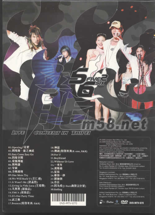價格為估,以實(shí)到貨為準(zhǔn)! 登峰造極亞洲巡回演唱會龍臺北站DVD(m58.net) 演唱會的開場由舞臺的聲光效果呈現(xiàn)群魔亂舞混亂的空間感,由5566成員協(xié)志、 仁甫、紹為、孟哲四人化身戰(zhàn)神現(xiàn)身分,別手持弓箭、長杖、 斧頭與長劍現(xiàn)身,霎時引起了第一波的高潮,四人精湛的舞蹈與歌聲征服了現(xiàn)場近二萬名的歌迷,在整體效果的呈現(xiàn)上由師弟太極kone R&B 配合第一首歌《easy come easy go》的節(jié)奏,在舞臺上整齊劃一的表演,著實(shí)可媲美日本杰尼斯的表演,整個舞臺約容納了近50位dancer,由5566四位成員帶領(lǐng)著揭開序曲。 接下來分別演唱《四度空間》、《愛情漫游》,其中為了突顯舞蹈,四位成員舞蹈大對決,直接在浩大的舞臺上尬舞,如此的舉動惹的全體尖叫四起,讓大家懾服他們的舞蹈真是出神入化,在個人表演 的部分,率先由仁甫領(lǐng)軍出場演唱we will rock u,高危險度的吊鋼絲,高度近一層樓高,配合著華利的演出服魅力四射,接棒的是孟哲 it wasn’t me ,他乘著奔馳銀色敞篷車出場 ,化身富家白馬王子,呼應(yīng)了現(xiàn)在所演出《愛上千金美眉》的劇情,接著登場的是紹偉的個人秀,演唱歌曲為Living La vita Loca,服裝表現(xiàn)為化身八號當(dāng)鋪的復(fù)古中國風(fēng),壓軸的是協(xié)志反串秀,身著海灘服與蛙鞋水槍,讓全場的小朋友看的目瞪口呆。 在服裝部分,光是5566成員的部分一連換了八套服裝 ,舞臺上的變化道具一共有五十多種變化之多 ,加上太極、kone、r&b、此次的dancer之多,整場演唱會的服裝高達(dá)200多套,其中每段的vcr 都精心設(shè)計(jì),例如協(xié)志的部分,本完全不會游泳的他,而且怕水到了極點(diǎn)的他,為了此場演唱會克服了怕水的恐懼,淺下了游泳池,去找出深達(dá)近二公尺深的高度,取出了原本的牌子抽出了幸運(yùn)歌迷。