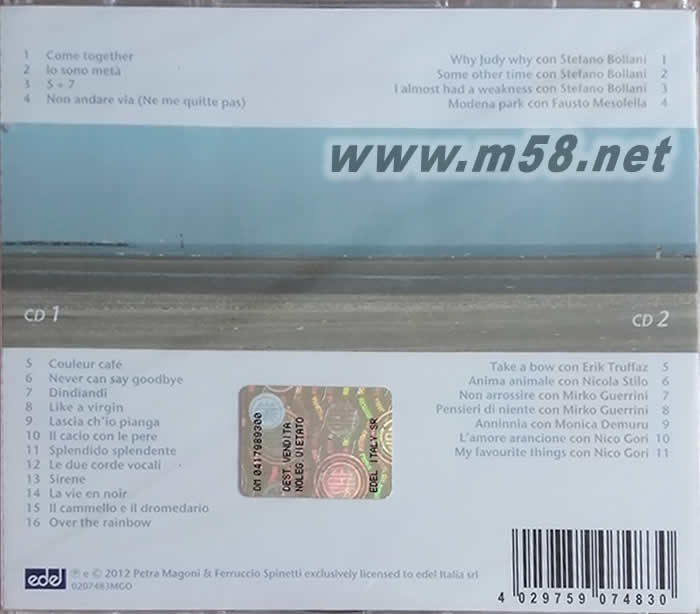 CD 1: 01. Come Together 02. Io Sono Meta 03. 5 + 7 04. Non Andare Via (Ne Me Quitte Pas) 05. Couleur Cafe 06. Never Can Say Goodbye 07. Dindiandi 08. Like A Virgin 09. Lascia Ch Io Pianga 10. Il Cacio Con Le Pere 11. Splendido Splendente 12. Le Due Corde Vocali 13. Sirene 14. Le Vie En Noir 15. Il Cammello E Il Dromedario 16. Over The Rainbow CD 2: 01. Why Judy Why 02. I Almost Had A Weakness 03. Some Other Time 04. Modena Park 05. Take A Bow 06. Anima Animale 07. Non Arrossire 08. Pensieri Di Niente 09. Anninnia 10. L'amore Arancione 11. My Favourite Things