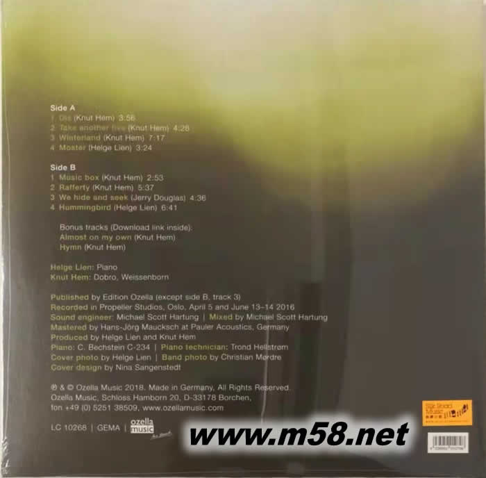 Hummingbird 蜂鳥 (爵士三重奏 鋼琴、低音大提琴、鼓 ) 黑膠(m58.net) Helge Lien (piano)、 Knut Hem (Dobro/Weissenborn)