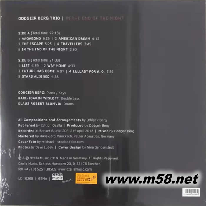 奧德蓋 伯格 爵士三重奏 [夜之盡頭]Oddgeir Berg Trio [In the End of the Night] 鋼琴、大提琴、鼓爵士三重奏 黑膠專輯背面圖片