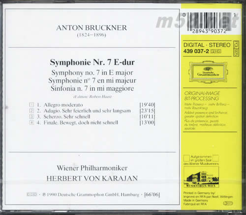 ANTON BRUCKNER 第7交響曲E大調(金裝卡拉揚系列)專輯背面圖片