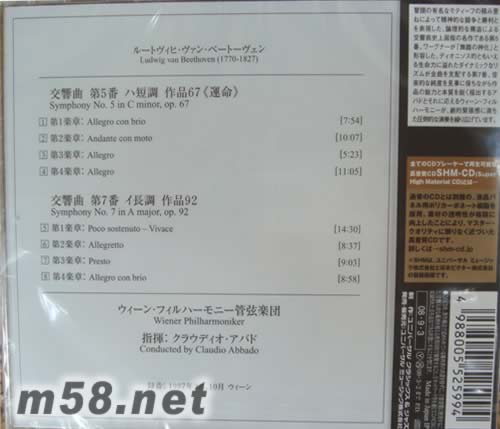 貝多芬第5 & 7交響曲(SHM-CD系列日本版)(m58.net) 錄音于:1987年 指揮:CLAUDIO ABBADO