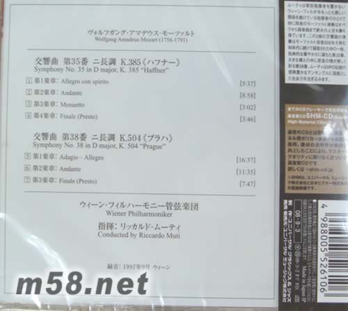 mozart: symphonies nos. 35 & 38 (SHM-CD系列日本版)專輯背面圖片