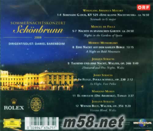 2009維也納仲夏夜音樂會SUMMER NIGHT CONCERT專輯背面圖片