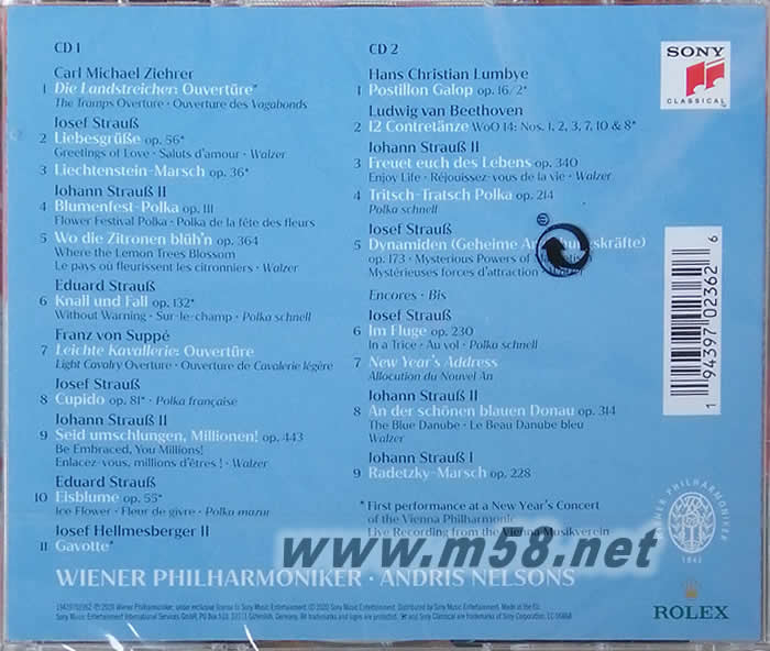 2020年維也納新年音樂會 指揮:拉脫維亞指揮家安德里斯·尼爾森斯(Andris Nelsons)CD專輯背面圖片