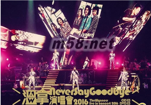 Never Say Goodbye演唱會 The Wynners Live In Concert 2016 DVD+CD(m58.net) 溫拿 (歌手)溫拿樂隊縱橫香港樂壇42年,2016年農歷新年在紅館舉行《Never Say Goodbye演唱會》,演唱會主題曲「溫拿精神」由譚詠麟與Mr.合作,見證五虎繼續發揚溫拿勵志精神,友情不變,以歌名粉碎解散的消息。五子甫出場唱出多首經典英文歌,又感性地分享當年分開發展的點滴,全晚50多首的曲目全部都是陪著樂迷成長的歌曲,舞蹈設計都以簡單易記為主,為新歌「Friend過打Band」自創舞步,與臺下歌迷一齊互動起舞添熱鬧氣氛。 The Wynners Live In Concert 2016 溫拿Never Say Goodbye演唱會 高規格制作3CD+3DVD版本 超過170分鐘精彩演出全程收錄.全高清拍攝五十多首作品