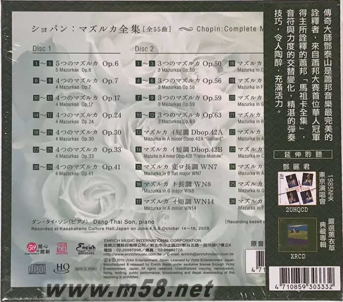 蕭邦:馬祖卡55曲全集 2HQCD專輯背面圖片