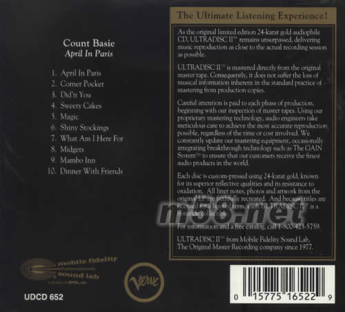 Count Basie貝西伯爵 四月的巴黎 24k金碟專輯背面圖片