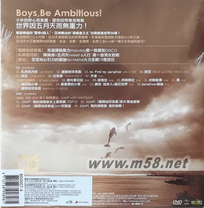 CD[全長(zhǎng)67min] 01. 私奔到月球 with陳綺貞 02. 離開(kāi)地球表面 03. to find my paradise with陳綺貞 04. 抓狂 XBOX 360[最后一戰(zhàn)3]主題曲 05. 知足 07最知足版 06. 垃圾車(chē) 07最夠朋友版 07. 天使 live 天堂的五個(gè)朋友:07 epic mixing 08. 摩托車(chē)日記 live 09. 孫悟空 live 10. 阿姆斯壯 live 11. 約翰斯壯 live 12. 我 live 13. 瑪莎的小事 piano live 14. 最重要的小事 live 15. 晚安 地球人+瘋狂世界 live 16. paradise+倔強(qiáng) live 17. 離開(kāi)地球表面 Remix by DJ ROCK DVD[全長(zhǎng)50min] Jump the DVD深入地球核心 JUMP With MAYDAY! 01. JUMP!我的演唱會(huì)史上最奇跡 TOP10 02. JUMP![離開(kāi)地球表面]影片幕后直擊 03. JUMP![離開(kāi)地球表面]MV完整版 04. JUMP!我的演唱會(huì) 我的挑戰(zhàn)