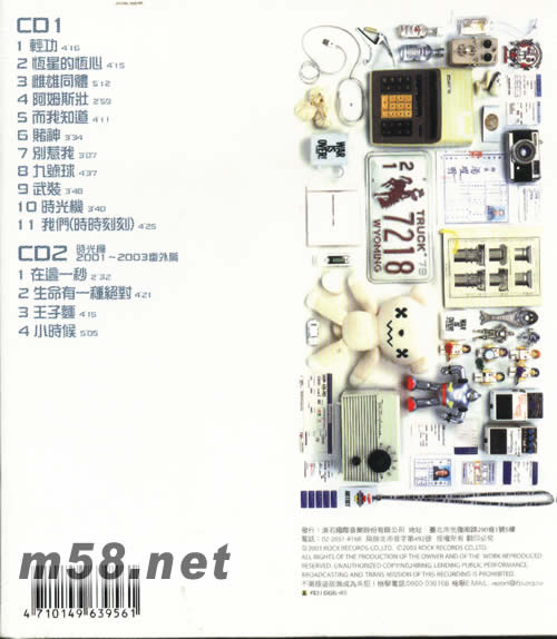 CD 1 1、輕功 2、恒星的恒心 3、雌雄同體 4、阿姆斯妝 5、而我知道 6、賭神 7、別惹我 8、九號球 9、武裝 10、時光機(jī) 11、我們(時時刻刻) CD 2 1、在這一秒 2、生命有一種絕對 3、王子面 4、小時候