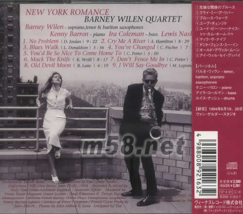 浪漫紐約(HI-FI昔士風(fēng)四重奏)日本版(m58.net) 昔士風(fēng)巨星BARNEY WILEN及鋼琴大師KENNY BARRON以四重奏演繹多首名曲,精彩的演出及浪漫的情懷達(dá)至極點(diǎn),忘我的演出令人著迷.天碟錄音師RUDY VAN GELDER錄制音色靚絕.