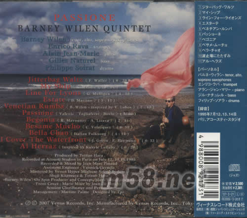昔士風巨星BARNEY WILEN夥拍小號大師ENRICO RAVA以五重奏演繹多首名曲.爽朗樂章揮灑自如,演出極具韻味.浪漫旋律醉意濃情.重新混音推出,通透音色如臨現場.