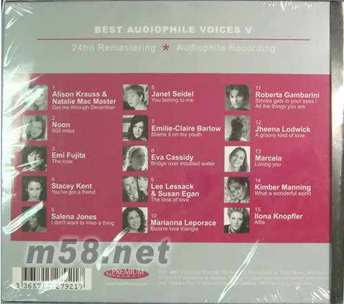 1 Alison krauss& natalie mac master/get me through decdmber 2 Noon/500 mlies 3 Emi fujita/the rose 4 StaceyKent/you've got a friend 5 Salena Jones/i don't want to miss a thing 6 Janet Seidel/you belong to me 7 Emilie-Claire Barlow/blame it my youth 8 Eva Cassidy/bridge over troubled water 9 Lee Leessack & Susan Egan/the look 10 Mareanna Leporace/bizarre love triangle 11 Roberta Gambarini/smoke gets in your eyes/all the things you are 12 Jgeena Lodwick/a groovy kind of love 13 Marcela/loving you 14 Kinber Manning /what a wonderful wold 15 llona Knopfler/alfie