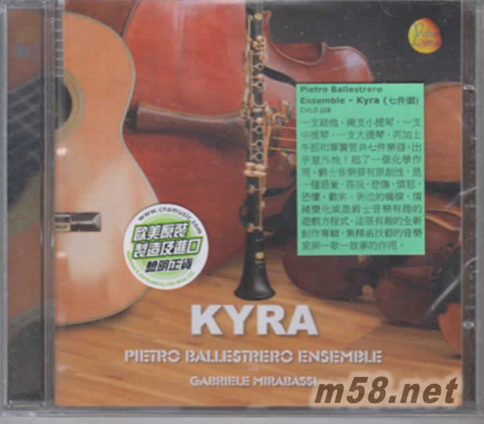 價格為估,以實到貨為準! PIETRO BALLESTRERO EMSEMBLE Kyra 七件頭 爵士樂(m58.net) Pietro Ballestrero Ensemble Kyra (七件頭) 一支結他,兩支小提琴,一支中提琴,一支大提琴,再加上牛筋和單簧管共七件樂器,出乎意外地!起了一個化學作用。爵士音樂要有原創性,是一種感覺,喜悅,悲傷,憤怒,恐懼,歡笑,哭泣的橋樑,情緒變化或是爵士音樂有趣的游戲方程式。這張有趣的全新創作專輯,集精湛技藝的音樂家與一歌一故事的作用。
