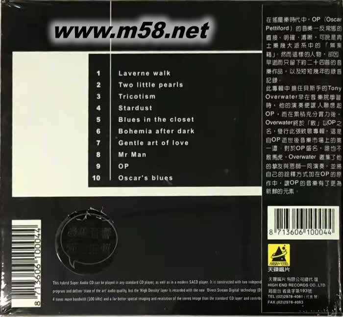 發燒爵士極品Tony Overwater - OP SACD專輯背面圖片