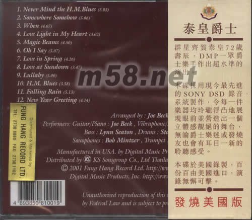 張爵士樂性燒錄音是專誠為泰皇72歲壽辰而灌錄的,難能可貴。由DMP旗下的爵士樂人Joe Beck聯(lián)同鐘琴/馬林巴木片琴手Dave Sammels、低音手Lynn Seaton、鼓手Steve Dais、色士風(fēng)高手Bob Mintzer及小號手Scott Wenholt聯(lián)合泡制十二首爵士樂曲。錄音采用DSD,在美國制模及壓碟,錄音效果高水準(zhǔn)。首曲“Never Mind The H.M.Blue”格調(diào)醇美迷人,色士風(fēng)錄得像真自然,音色鏗鏘有光澤。“When”的馬林巴琴聲音亮麗通透,中段的鐘琴聲效果截然不同,各種伴奏樂器音色細(xì)致分明;整體音效高超,聲音層次感豐富,定位準(zhǔn)確。“Only I Say”是全碟最浪漫柔情的作品,以昔士風(fēng)主奏,音色純凈暖潤,傳真度高,結(jié)像立體;配樂清簡,音響畫面如詩如畫。全碟可聽性高,無論你愛不愛吃泰國菜都會喜歡!