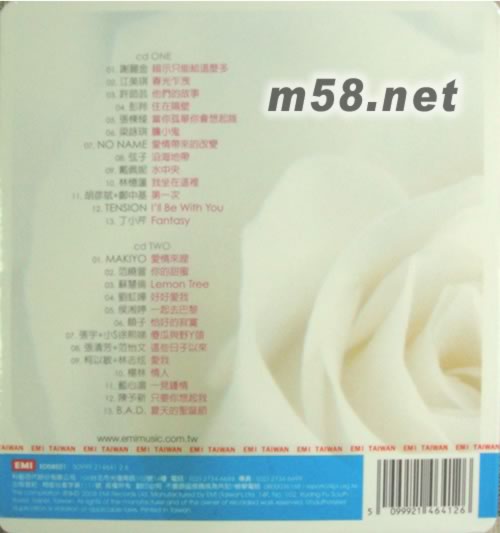 謝麗金 暗示只能給這麼多♥江美琪 春光乍洩♥許茹蕓 他們的故事♥彭羚 住在隔壁♥張棟樑 當(dāng)你孤單你會想起誰♥梁詠琪 膽小鬼♥NO NAME愛情帶來的改變♥弦子 沿海地帶♥戴佩妮 水中央♥林憶蓮 我坐在這裡♥胡彥斌+鄭中基 第一次♥TENSION I’ll Be With You♥丁小芹 Fantasy♥MAKIYO 愛情來哩♥范曉萱 你的甜蜜♥蘇慧倫 Lemon Tree♥劉虹嬅 好好愛我♥侯湘婷 一起去巴黎♥順子 恰好的寂寞♥張宇+小S徐熙娣 傻瓜與野Y頭♥張清芳+范怡文 這些日子以來♥柯以敏+林志炫 愛我♥楊林 情人♥藍心湄 一見鐘情♥陳予新 只要你想起我♥B.A.D. 夏天的圣誕節(jié)