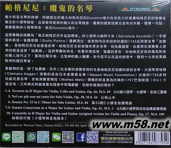 義大利是名琴的故鄉,而總部位於義大利熱內亞的Dynamic唱片向來致力於推廣帕格尼尼的音樂及專注於小提琴錄音,且皆使用經典的義大利名琴錄音,優異的錄音效果也是有目共睹。簡單一句話:要聽最美的小提琴琴音,就在Dynamic唱片。