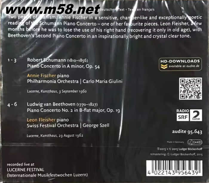 1960/1962年琉森音樂節歷史名演 本專輯由每秒76公分轉速母盤帶重製而成,音質溫厚鬆軟,細節豐富;德國原裝進口