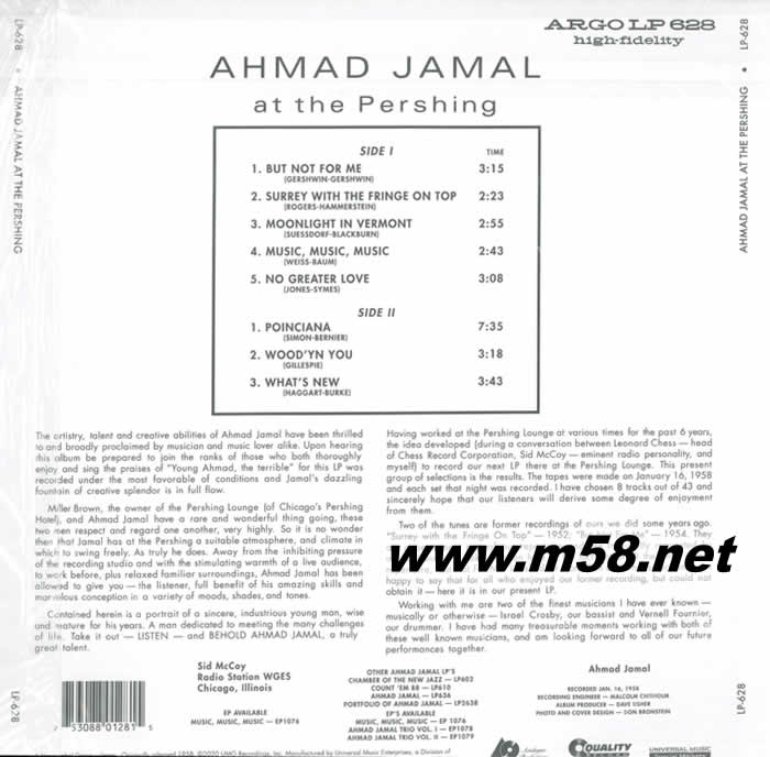 爵士三重奏AHMAD JAMAL TRIO AT THE PERSHING BUT NOT FOR ME(鋼琴、吉它、貝斯) 黑膠(m58.net)