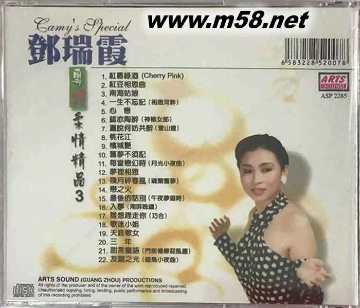 01. 紅唇綠酒 02. 紅豆相思 03. 南海姑娘 04. 一生不忘記 (相思河畔) 05. 心戀 06. 錯亦陶醉 (神秘女郎) 07. 灑脫何妨共醉 (雪山盟) 08. 桃花江 09. 檳城艷 10. 舊夢不須記 11. 每當變幻時 (月光小夜曲) 12. 夢裏相思 13. 殘月碎春風 14. 戀之火 15. 最 * 后的話別 16. 入夢 17. 誰想趕走你 18. 歌迷小姐 19. 天涯歌女 20. 三年 21. 甜言蜜語 22. 友誼之光 (綠島小夜曲)