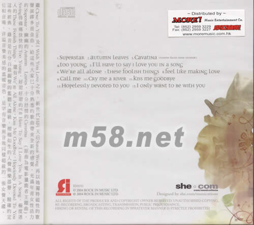 THERE FOOLISH THINGS(m58.net) 繼CLOSE TO YOU LOVE 之后,新世代HIFI 天后SUSAN WONG 再以她獨(dú)特磁性的歌聲演繹多首金曲,給這些大家已十分熟悉的歌曲帶來(lái)全新的感覺(jué),充滿(mǎn)年青女性活力的SUPERSTAR ,幽幽的AUTUMN LEAVES,十分抒情的CAVATINA (原曲為電影獵鹿者主題曲),SWING得痛痛快快的TOO YOUNG ,好甜的I'II HAVE TO SAY I LOVE YOU IN A SONG ,極度迷人的THESE FOOLISH THINGS,還有WE'RE ALL ALONG ,KISS ME GOODBYE ,HOPELESSLY DEVOTED TO YOU 這些經(jīng)典.錄音是百分最靚聲的臨聽(tīng)天碟級(jí),栩栩如生的人聲與樂(lè)器聲,精確的定位和音場(chǎng),洋溢音樂(lè)美感的溫暖音色,是罕有音樂(lè)與音效同樣超級(jí)的一張女聲天碟.