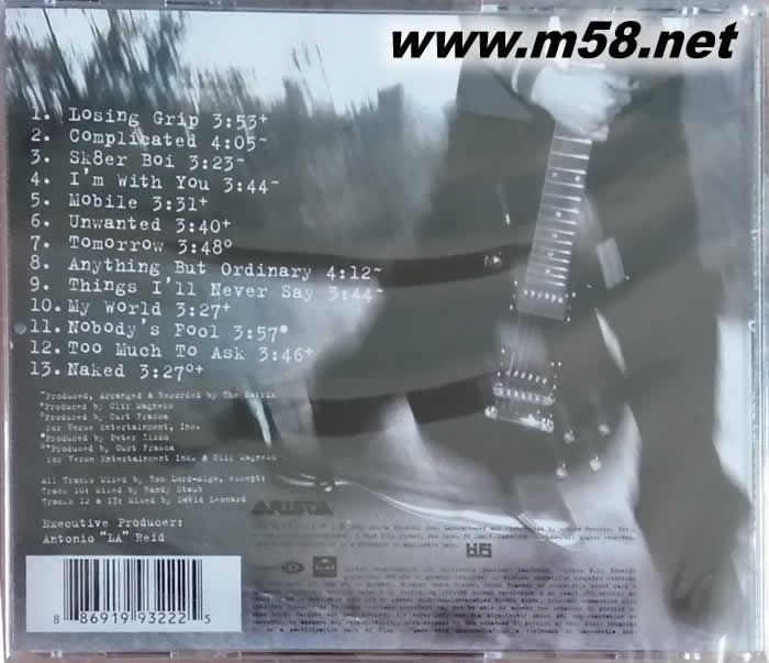 1 losing grip 2 complicated 3 sker boi 4 I'm with you 5 mobile 6 unwanted 7 tomorrow 8 anything but ordinary 9 things I'll never say 10 my world 11 nobody's fool 12 too much to adk 13 naked