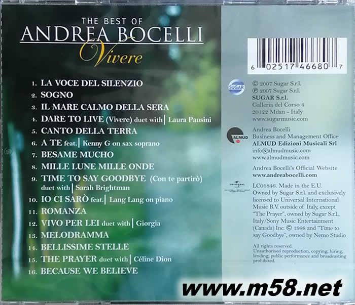 THE BEST OF ANDREA BOCELLI VIVERE 生命奇跡-世紀精選加新歌(m58.net)