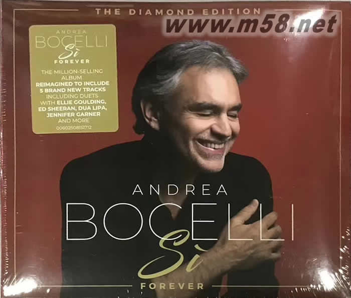 2018年,有著媲美上帝美聲的安德烈波伽利Andrea Bocelli發行了睽違14年的原創專輯【Sì】同步空降告示牌與英國金榜冠軍,寫下了「近20年來,史上第一位達成此紀錄的流行古典歌手」傲人紀錄!美聲魅力無法檔的席捲世界各地,今年延續這份感動,升級推出【Sì Forver】加收五首全新作作,更攜手電音精靈艾麗高登Ellie Goulding與好萊塢巨星珍妮佛嘉納Jennifer Garner共同合作,以音樂再次感動全球樂迷。