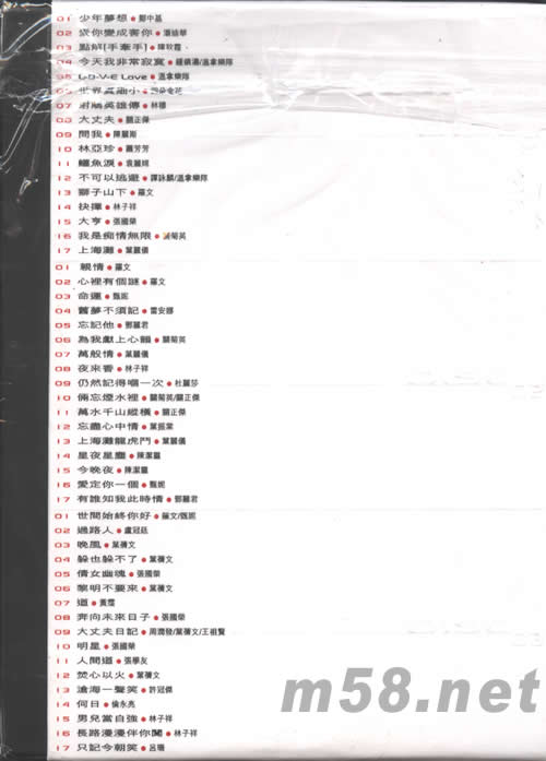 所屬歌手:   [鄭中基] [陳秋霞] [鐘鎮(zhèn)濤] [溫拿樂隊] [關(guān)正杰] [羅文] [林子祥] [張國榮] [葉麗儀] [杜麗莎] [葉振棠] [陳潔靈] [甄妮] [盧冠廷] [葉倩文] [張學(xué)友] [許冠杰] [呂珊] [倫永亮]