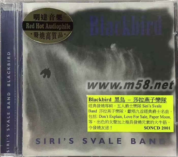 莎拉燕子樂隊 BLACKBIRD 黑鳥 爵士五重奏(挪威版)(m58.net) 莎拉燕子五巨頭是一個來自挪威的爵士樂團——“Siri's Svale Band”。“Siri”是女主唱的名字,她有著低沉慵懶、富含磁性的聲音,就適合唱Jazz。“Svale”有兩個意思:一個是“燕子”,另一個是“Cool”的意思。所以,莎拉燕子五巨頭也是演奏Cool Jazz的“酷派樂團”。他們1990年灌錄的專輯《黑鳥》評價非常棒,而且是發燒級錄音。 在這張《黑鳥》(Black Bird)當中,挪威頂級天后莎拉以藍調柔和了爵士的唱法,傾情演繹了9首曲子,音色優秀,伴奏鮮明,絕對是難得的藍調爵士女聲天碟。如果您是發燒友,那么您的器材在播放該張CD的時候,您肯定會興奮的。 美國《Stereophile》權威評價《黑鳥》:“全碟充滿絕美女聲,及驚人的低頻!”的確如此,單是開篇頭一首《I Don't Explain》,迎面而來的低頻,已經是深感過癮,緊接著莎拉那略帶憂郁、尤富磁性的嗓音出場,更是緊緊抓住了你的聽覺。在這張《黑鳥》里面的第三首《Like That》,簡單的二字歌詞,除了一段過場,一頓一挫,旋律非常優美。《Love Me Or Leave Me》、《Paper Moon》的跳躍律動,為整張專輯暗淡的憂郁點綴上絲絲的色彩。一曲《Bassar》,更使整個樂隊充分表現其器樂之精彩,主音Siri只是在里面擔當和聲的角色,正是“好花還需綠葉扶”!
