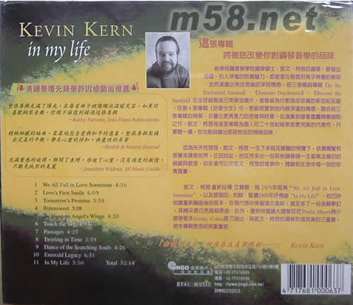 新英格蘭音樂學院鋼琴碩士,凱文‧柯恩的鋼琴,散發出活躍、引人深省的聆賞魅力,因為先天性弱視,凱文‧柯恩一生下來就在朦朧的視覺下,依靠觸覺和感覺來摸索世界,正因如此,他反而多出一份其他鋼琴師一生都無法模仿的細膩與敏感,前三張暢銷專輯《In the Enchanted Garden》、《Summer Daydreams》、《Beyond the Sundial》在全球銷售皆已突破金唱片,在第4張專輯《珍愛今生》交疊出更具張力的想像與詩意,只要聽一遍,你也能品嚐出那股脫俗的精致品味。