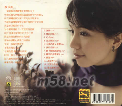 價格為估,以實到貨為準! 真情 SACD(m58.net) 一個擁有臺灣國寶級歌喉的女子 珠圓玉潤的歌聲最能道盡那個年代的動人 她有唱遍老歌為家計奔走的辛酸童年 也擁有過瓊瑤愛情文藝片時代少女的回憶 更曾以甜美的音色為臺灣樂壇留下一頁頁柔情的詩篇 如今她重拾記憶中的吉光片影 用她的感動化成現代經典 在這一首首的情歌中不僅有她的心路 也讓我們隨著她的歌聲 回到一個令人迷戀的年代 從久蟄的浪漫情懷中 漸漸甦醒……漸漸甦醒……