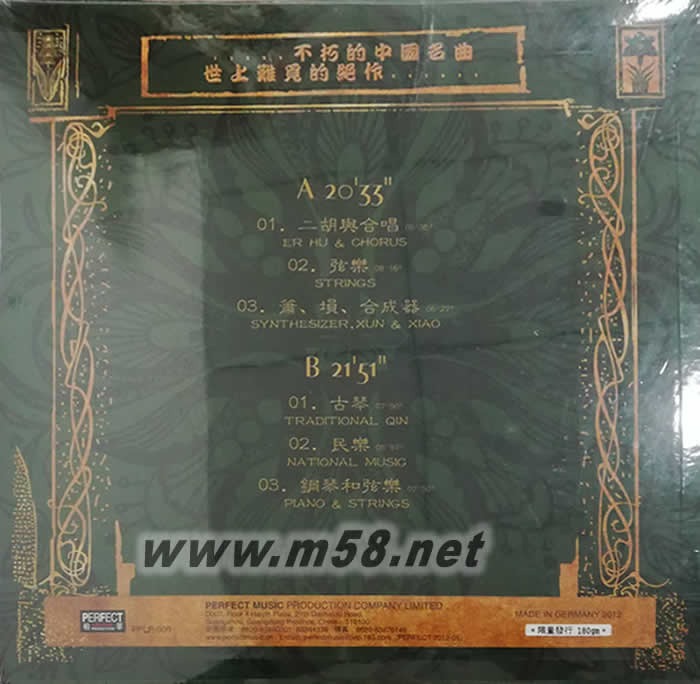 二泉映月 180g 33RPM LP 黑膠 限量版(m58.net) 二泉映月》—— 一首真正打動人心的樂曲。 從來沒有一首樂曲能使我這樣地感觸良多,每每在它悠悠旋律里流連,總會想到很多。 人的感情,人的經(jīng)歷,人的幻想,人的現(xiàn)實……似乎每個人都能在它的漣漪里看到自己的影子。 早年在錄制由著名二胡演奏家閔惠芬女士與無伴奏合唱演奏的版本時,就視該樂曲為至愛, 夢想有一天把這一首中國的名曲通過若干個版本的演奏,匯編成集,帶給全世界喜愛中國樂曲的人們。 于是經(jīng)過了這些年,錄成了鋼琴與弦樂,弦樂合奏,中國民族器樂合奏以及現(xiàn)代電子合成器演奏的各個版本, 仔細聽來,同一旋律不同的韻味,帶給你不盡相同的境界和遐想,回味無窮…… 總認為這首不朽的中國名曲是世上難覓的絕作。我們應該珍惜它,讓它光大,讓它流芳……