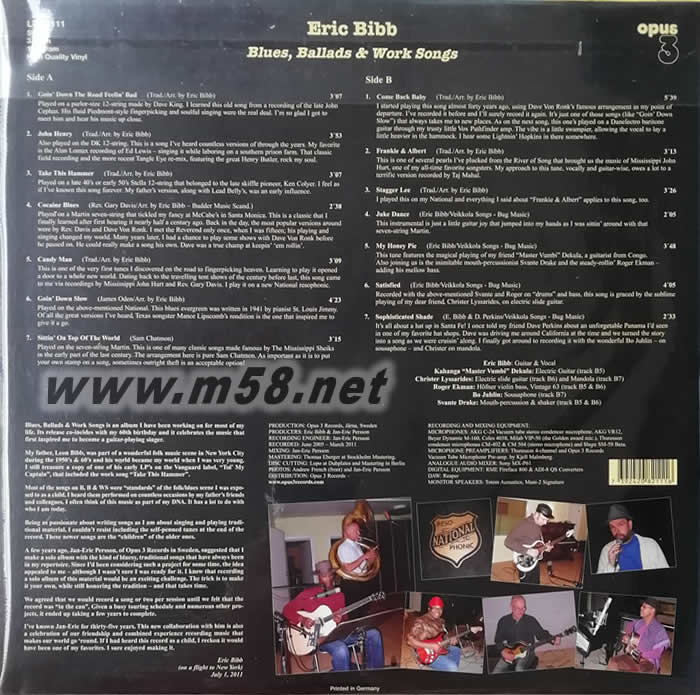 艾瑞克·畢伯 - 藍調民謠歌曲 Blues Ballads & Work Songs 180g 33RPM LP 黑膠專輯背面圖片