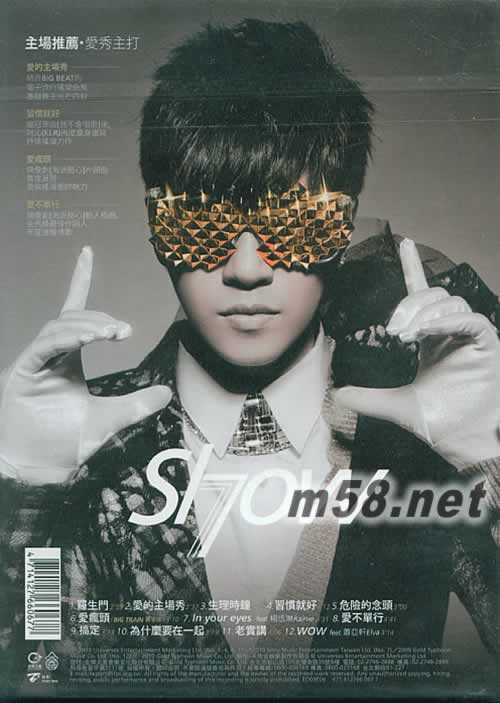 羅生門 正式版 雙封面+炫目靜電貼+寫真歌詞本 臺灣版(m58.net) 正式版加贈 <首創(chuàng) 潮男變臉雙封面 炫目靜電貼> 全新造型 專屬歌詞本照片 和預(yù)購版完全不同! 世界用7天創(chuàng)造 舞王用7年打造 羅志祥SHOW巔峰造極第7張音樂力作 [羅生門] 打開愛情的 羅生門 解開真實(shí)與謊言的密碼 打開音樂的 羅生門 再創(chuàng)亞洲舞王全新神話 潮男領(lǐng)SHOW自我突破 2010裝飾系潮男主場秀 臺灣人的創(chuàng)意 好萊塢的班底 [愛的主場秀]MV開創(chuàng)亞洲舞王新神話 700萬鉅資遠(yuǎn)征紐約歌劇院 羅志祥化身劇場守護(hù)者大秀墨鏡舞 第一道愛的羅生門 = 衝動 愛的主場秀 愛情剛開始的相遇 棋逢敵手 斗智斗勇 誰才是這場游戲的主導(dǎo)者? 結(jié)合BIG BEAT的電子流行搖滾曲風(fēng) 墨鏡舞王光芒四射 為什么要在一起 當(dāng)感情過了衝動期 有時(shí)候會讓人忘了當(dāng)初心動的原因… 首度詮釋爵士JAZZ靈魂樂曲風(fēng),展現(xiàn)成熟紳士魅力,讓人驚艷 第二道愛的羅生門 = 偽裝 習(xí)慣就好 回憶就像一道關(guān)不上的門 寂寞要花多久時(shí)間才能習(xí)慣? 阿沁(F.I.R) 繼冠軍點(diǎn)播曲[我不會唱歌]后,再次量身譜寫SLOW ROCK抒情搖滾年度K 歌 第三道愛的羅生門 = 揮霍 愛瘋頭 當(dāng)愛上一個(gè)人,為愛瘋了頭,赴湯蹈火,海派獻(xiàn)出所有也不算什么! 首次嘗試輕快的英倫搖滾節(jié)奏. 浪漫偶像劇[海派甜心]片頭曲. 搞定 為了愛的證明 搞定所有要求 五體投地的揮霍 只為對方開心 帶有80年代DISCO和HOUSE 節(jié)奏的輕鬆舞曲. 生理時(shí)鐘 熱戀時(shí)揮霍相愛的每一分鐘 ,二個(gè)人像生理時(shí)鐘24小時(shí)同步著 融合POP R&B 節(jié)奏的甜蜜小品 第四道愛的羅生門 = 等待 愛不單行 愛不是單數(shù),相信自己能擁有幸福,對的人也在未來等待與你相遇 由馬毓芬製作,金馬獎(jiǎng)最佳作詞人嚴(yán)云農(nóng)全新溫暖情歌,浪漫偶像劇[海派甜心]插曲 第五道愛的羅生門 = 受傷 羅生門 是否真愛的學(xué)分 非要摔痛了才能修得成?那千奇百怪艱深的學(xué)問 就像羅生門 R&B節(jié)奏藍(lán)調(diào)重拍節(jié)奏舞曲 暢銷作詞人陳鎮(zhèn)川最新力作 第六道愛的羅生門 = 報(bào)復(fù) 危險(xiǎn)的念頭 當(dāng)一段戀情結(jié)束,最危險(xiǎn)的念頭 是心存報(bào)復(fù)? 還是念念不忘? 情歌圣手姚若龍?zhí)钤~,羅志祥吶喊男人不為人知的心酸,成熟唱腔感人肺腑 第七道愛的羅生門 = 勇敢 老實(shí)講 感情世界里 想愛就要及時(shí)說 當(dāng)錯(cuò)過對的時(shí)間點(diǎn) 有些感覺就再也回不去了亞洲知名製作人李偉菘製作,鄭淑妃填詞.唱出愛情淡淡的哀愁與事過境遷的感慨