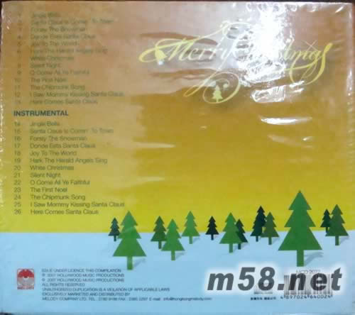 1.Jingle bells 2.santa claus is coming to town 3.frosty the snowman 4.dode esta:claus 5.joy to the world 6.hark.the herald angels sing 7.white christmas 8.silent night 9.o come,all ye faithful 10.the first noel 11.the chipmunk song 12.i saw mommy kissing santa claus 13.here comes santa claus INSTRUMENTAL 14.JINGLE BELLS 15.santa claus is coming to town 16.frosty the snowman 17.dode esta:claus 18.joy to the world 19.hark the herald angels sing 20.white christmas 21.silent night 22.o come all ye faithful 23.the first noel 24.the chipmunk song 25.i saw mommy kissing santa ciaus 26.here comes santa claus