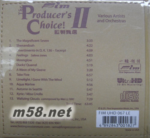 01. The Magnificent Seven 02. Shenandoah 03. Mozart Divertimento in D,K.136-Excerpt 04. Mozart Sinfonia Concertante K 364 05. The Rose 06. With A Wave of My Sleeve 07. Take Five 08. Limelight/Gone With The Wind 09. Autumn In Seattle 10. Taichi Concerto for Guqin & Piano-Excerpt 11. Intermezzo from Carmen