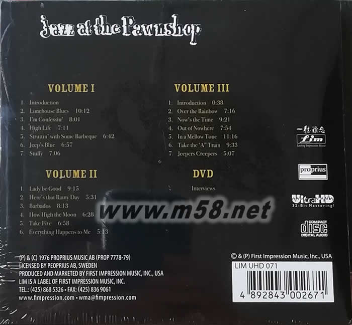 當(dāng)鋪爵士Jazz at the Pawnshop Vol. I, II and III 3ULTRACD+DVD專輯背面圖片